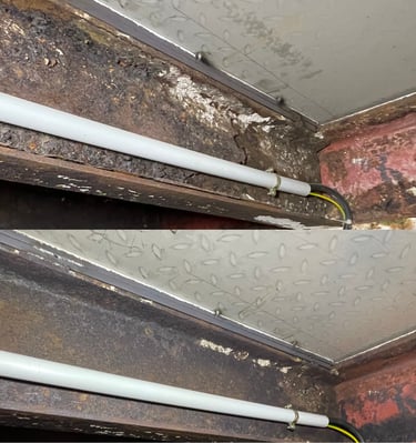 Gracias a su tamaño compacto y eficiencia, podemos ofrecer una limpieza rápida, sin desmontajes, abrasión, ni contaminación cruzada. Entre nuestras especialidades destacan la restauración de vigas de acero, limpieza de motores en grúas portuarias y la eliminación de residuos en maquinaria alimentaria.